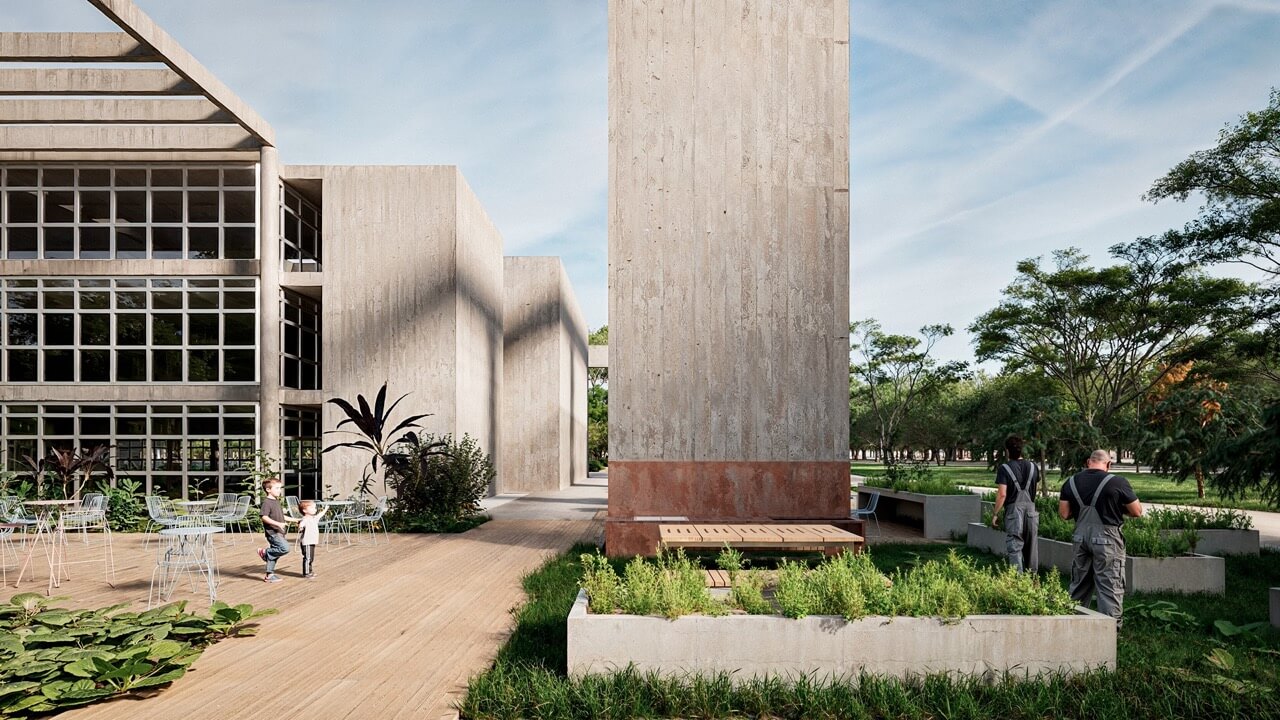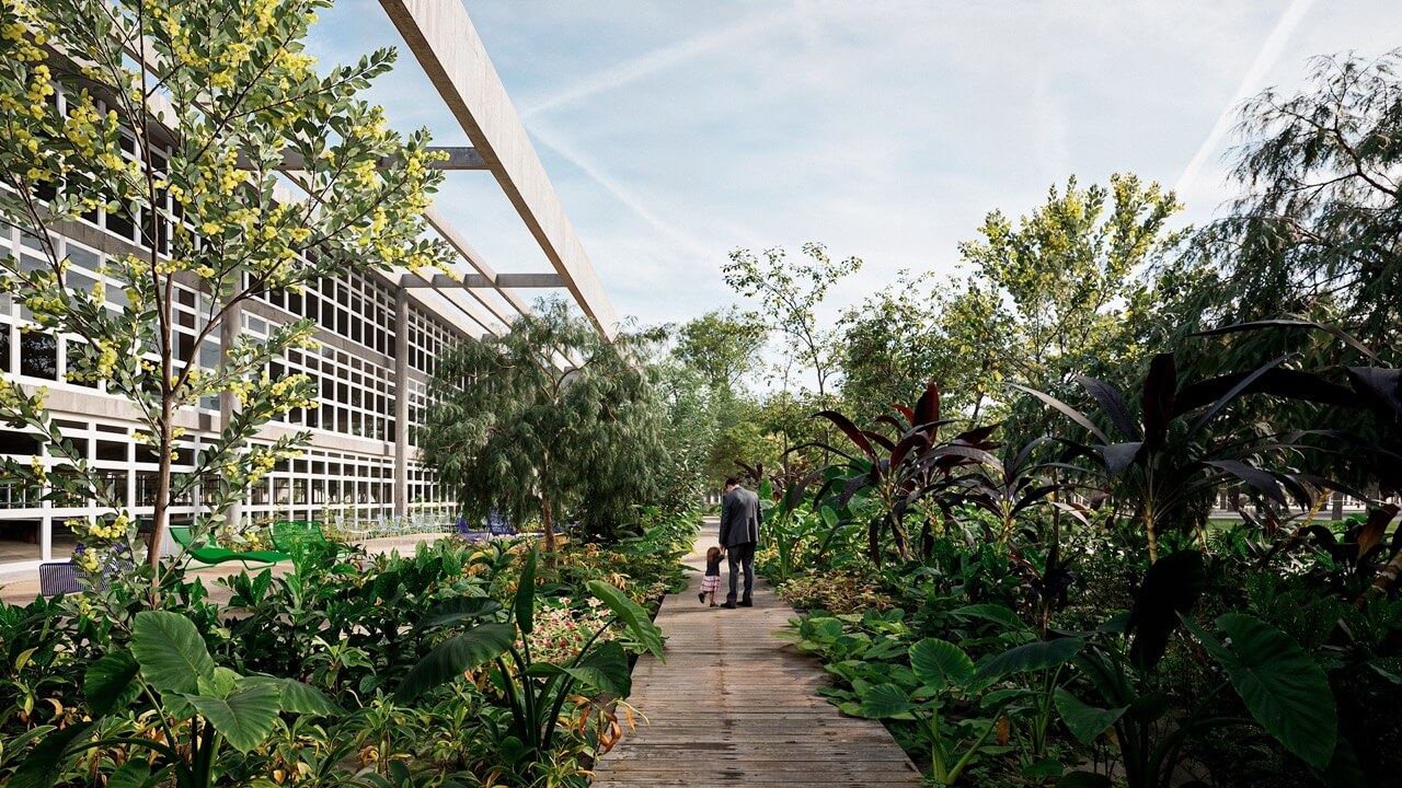 O eixo do projeto é um sistema inovador de manejo de água e a implantação da primeira “floresta freática” urbana construída de que se tem registro. Essa infraestrutura invisível capta água de 3.000 m² em um lençol freático construído, além de 600m² que abastecem descargas sanitárias e irrigam o jardim, de forma a reduzir o uso de água potável, aumentar a resiliência climática e contribuir para a mitigação de alagamentos no parque. O paisagismo funcional inclui o plantio de 1.400 mudas de mais de 50 espécies nativas da Mata Atlântica e uma horta agroecológica. Foi também criado espaço para um viveiro e desenvolvido o projeto de biblioteca de sementes, que vão colaborar para a disseminação das espécies do bioma, um dos mais diversos do mundo.